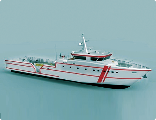 “50m Mother SAR Vessel” is designed as a fast vessel for Search & Rescue missions in long ranges. Due to high speed and optimum general arrangement, this vessel can be used as a multi purpose ship for wide applications. This vessel with modern hull form has excellent stability in waves up to sea state 6-8. The hull is made of marine aluminum with longitudinal and transvers frames which cause very good strength of the structure. Propulsion system of the vessel consists of four marine diesel engines connected to water jets which lead to good maneuvering. 10m Daughter Boat is considered on board “50m Mother SAR Vessel” is designed as a fast vessel for Search & Rescue missions in long ranges. Due to high speed and optimum general arrangement, this vessel can be used as a multi purpose ship for wide applications. This vessel with modern hull form has excellent stability in waves up to sea state 6-8. The hull is made of marine aluminum with longitudinal and transvers frames which cause very good strength of the structure. Propulsion system of the vessel consists of four marine diesel engines connected to water jets which lead to good maneuvering. 10m Daughter Boat is considered on board
